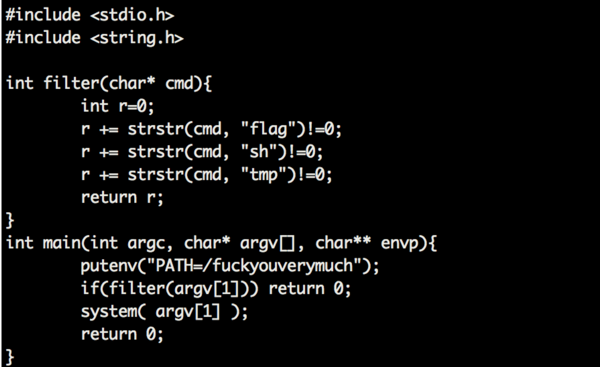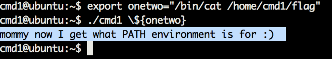 그렇다면 cat flag 를 절대경로로 환경변수에 올려서 환경변수자체를 인자로 주면 될듯하다.