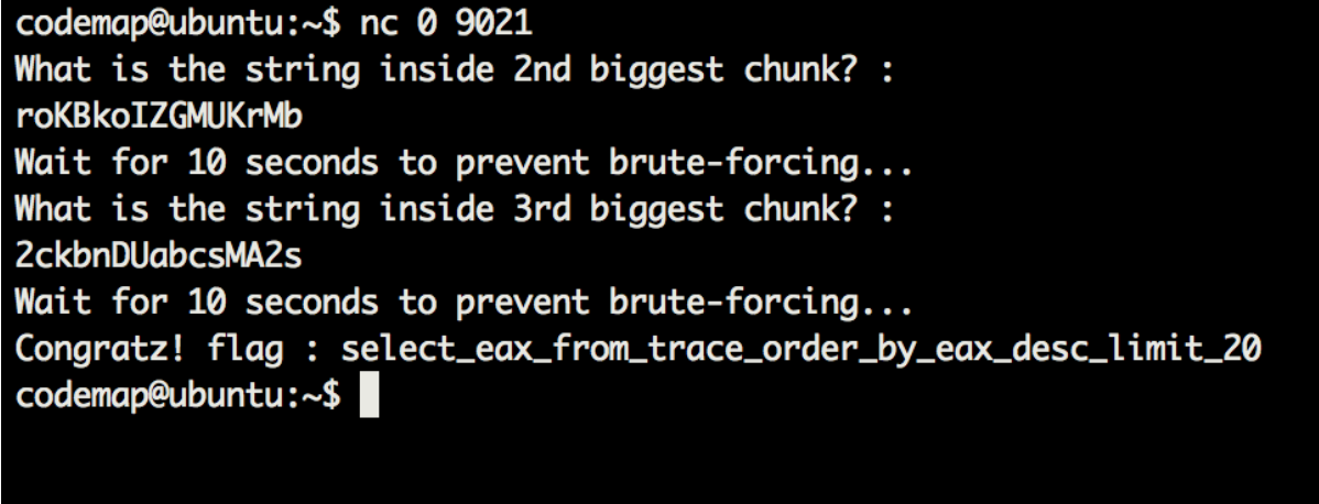 2번째로 큰 chunk를 보면 roKB~~~가 있고 3번째로 큰 chunk를 보면 2ckbn~~~이 들어있습니다. 순서대로 입력해주면 클리어!!!!