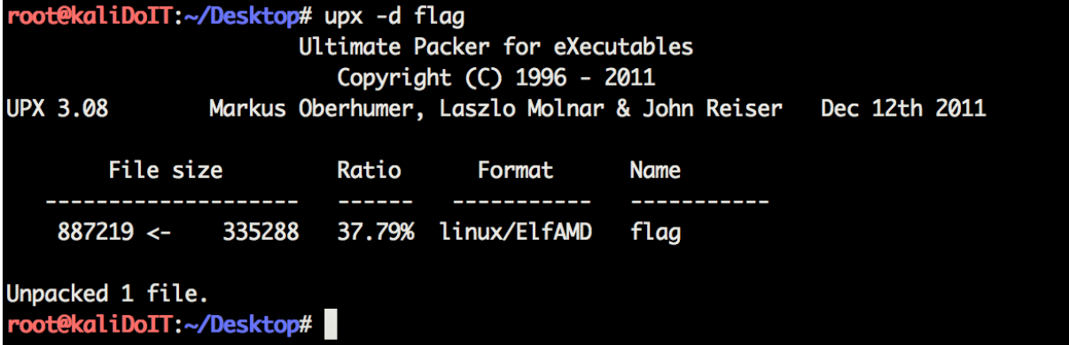 ELF파일에 UPX로 패킹 되어있는걸 확인할 수 있다.