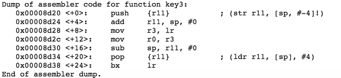 마지막으로 key 3에서는 lr레지스터를 r3에 넣고 r3값을 r0에 넣습니다.