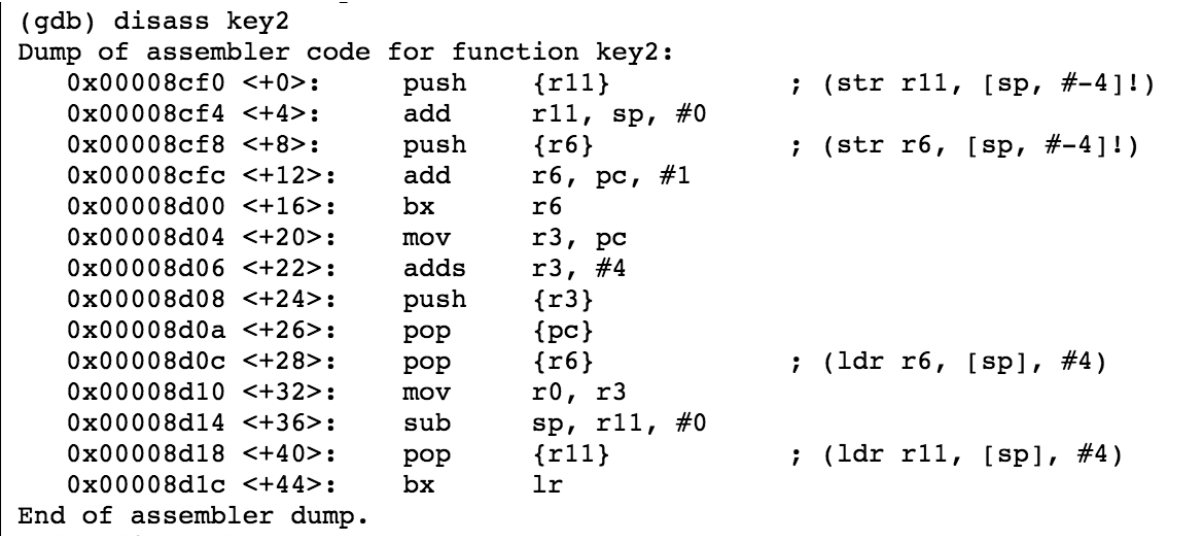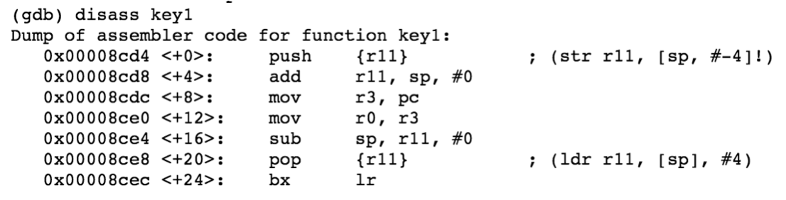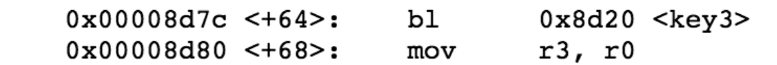key 2에서는 pc를 r3에 넣어준후, r3에 #4를 더한 후, r0에 넣어주네요 그렇다면