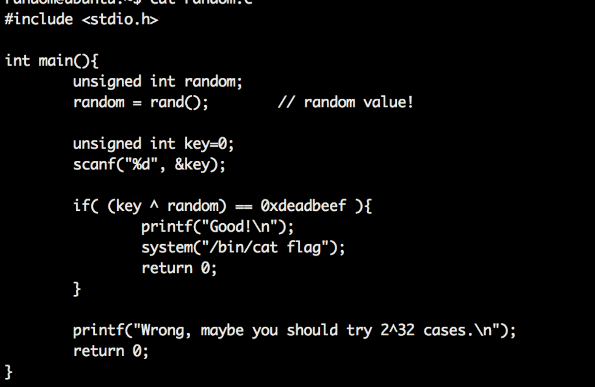 그러므로 random ^ 0xdeadbeef = key(사용자가 입력해야할 값) 이 된다.